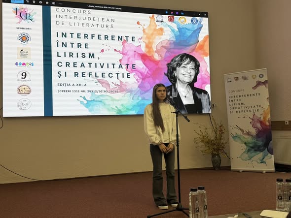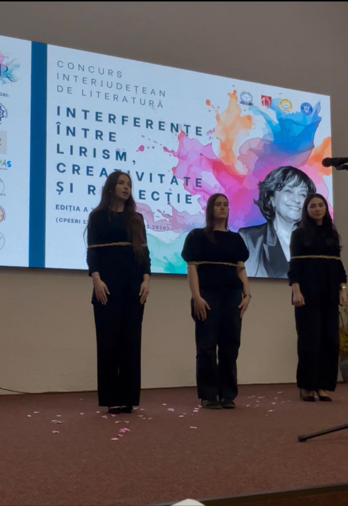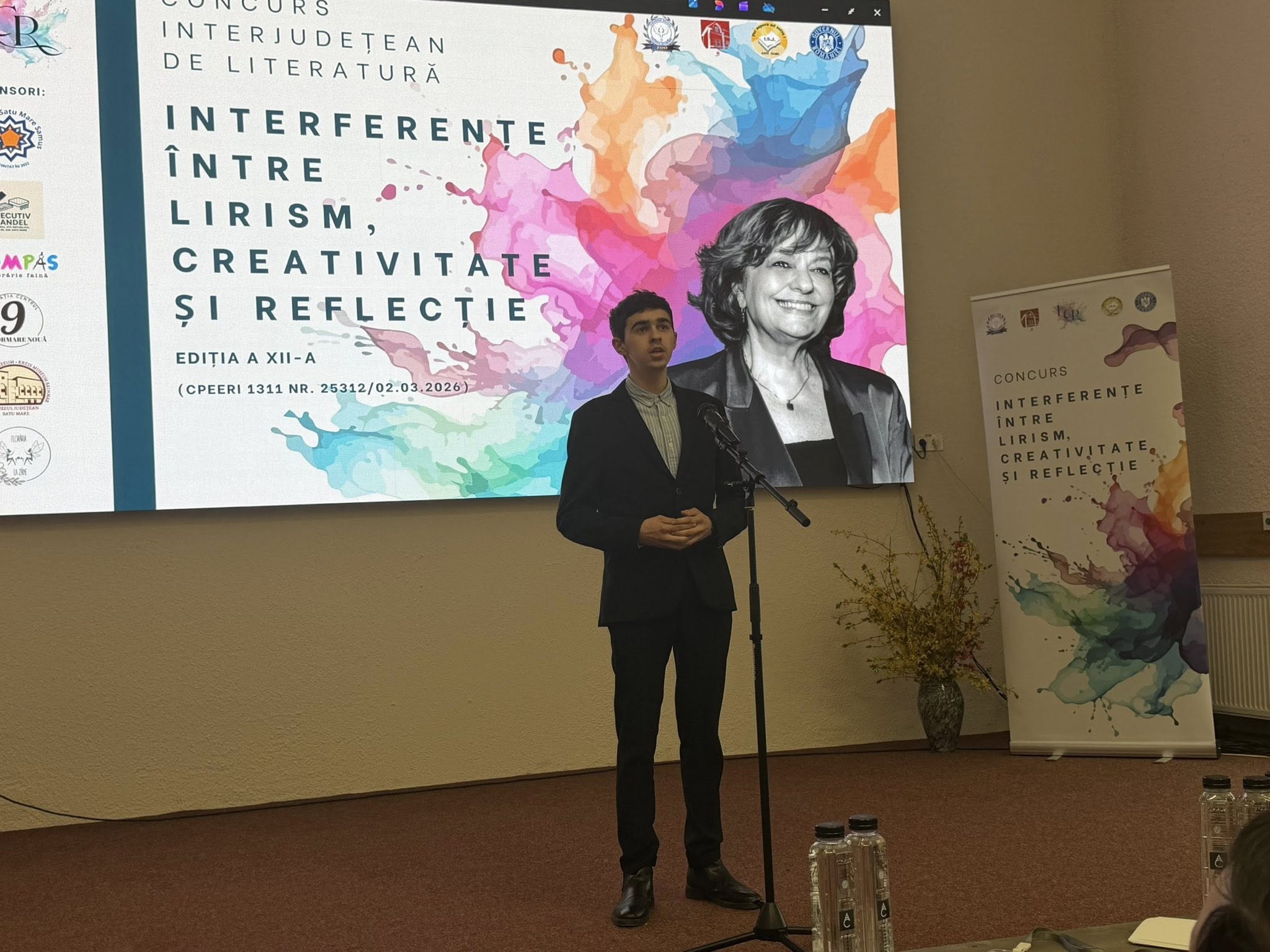 Astăzi, la Concursul interjudețean “Interferențe între lirism, creativitate și reflexie”, elevi de gimnaziu și liceu au urcat pe scenă — individual și în grup — și au adus poezia mai aproape de noi.